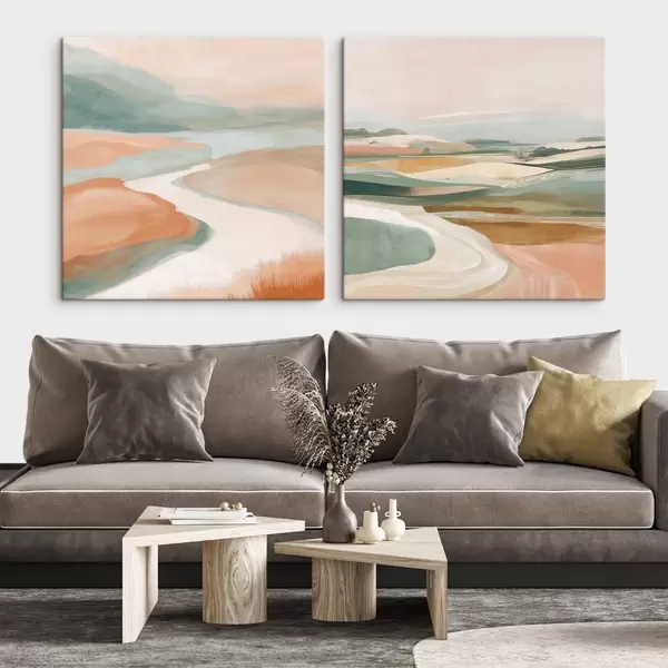 Quadri Colline astratte e fiume in tonalità pastello Nr m00896