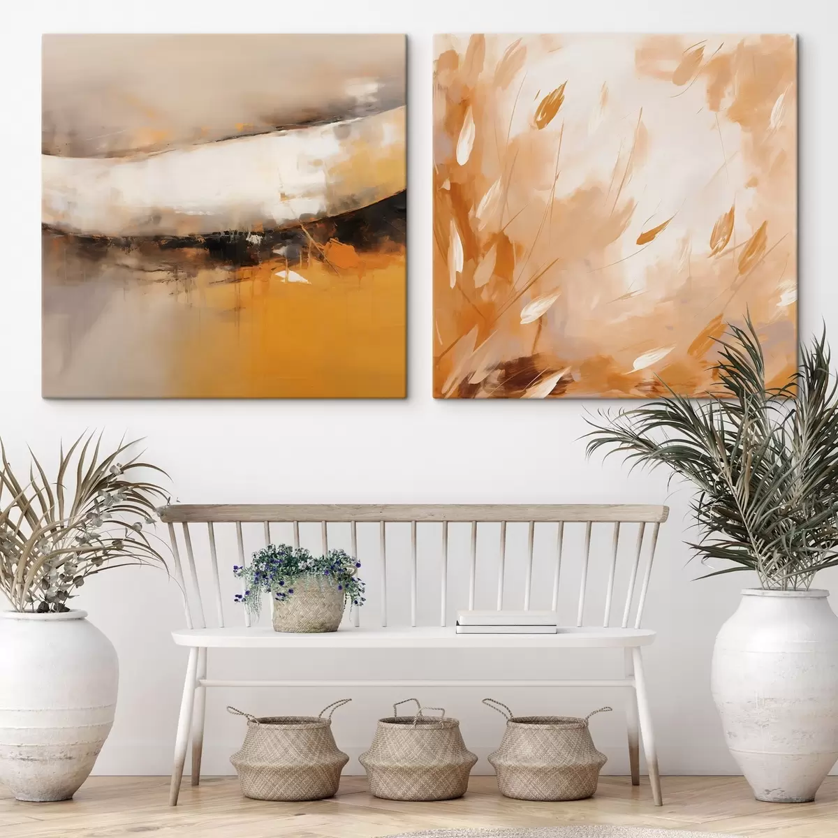 Quadri Dittico astratto in stile oleoso con tonalità giallo-arancio e nero Nr m00897