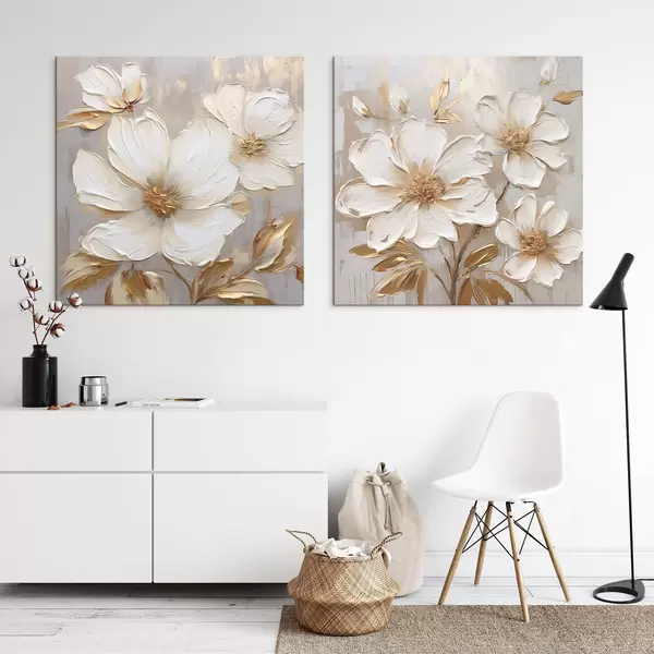 Quadri Dittico con grandi fiori dai colori chiari e caldi Nr m00927