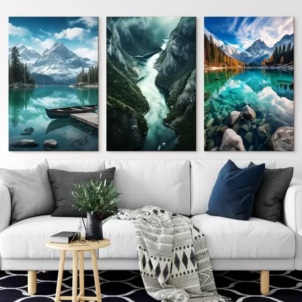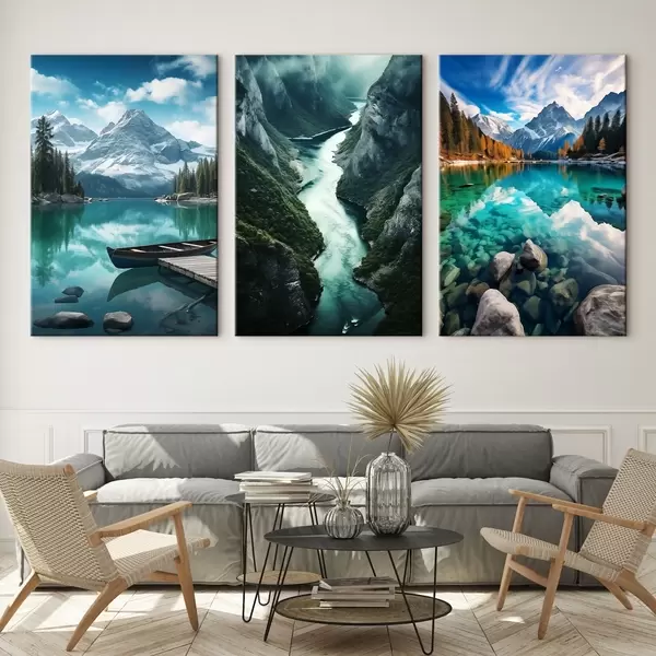 Quadri Laghi alpini e fiordi in freschi toni verde acqua Nr m00961