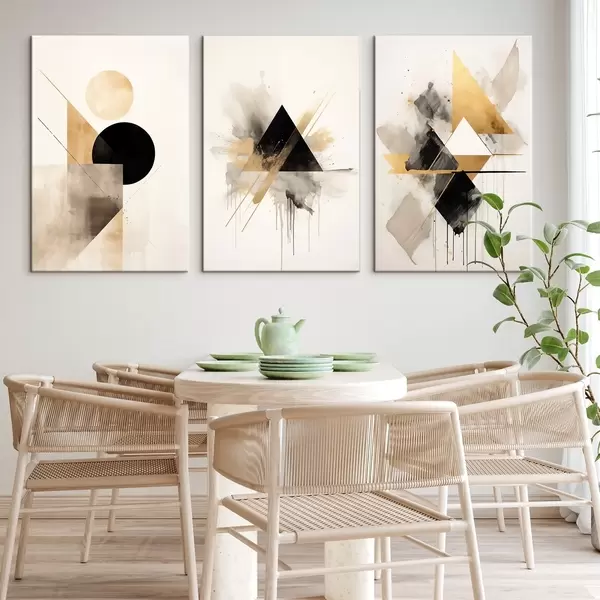 Quadri Triangoli geometrici con schizzi di inchiostro, nero e ocra Nr m00963