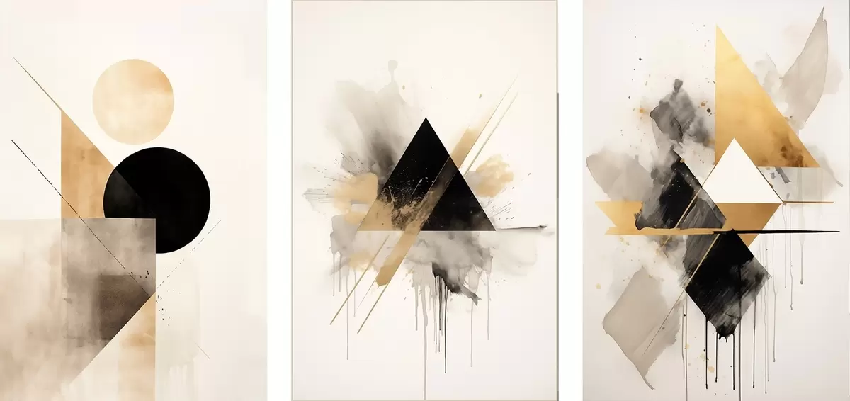 Quadri Triangoli geometrici con schizzi di inchiostro, nero e ocra Nr m00963