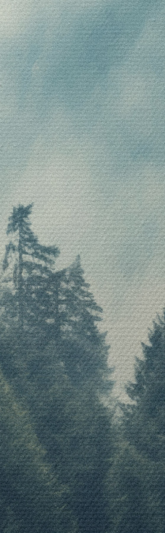Quadri Montagne di pini avvolte nella nebbia, ricoperte da morbide sfumature di verde e blu Nr m00964