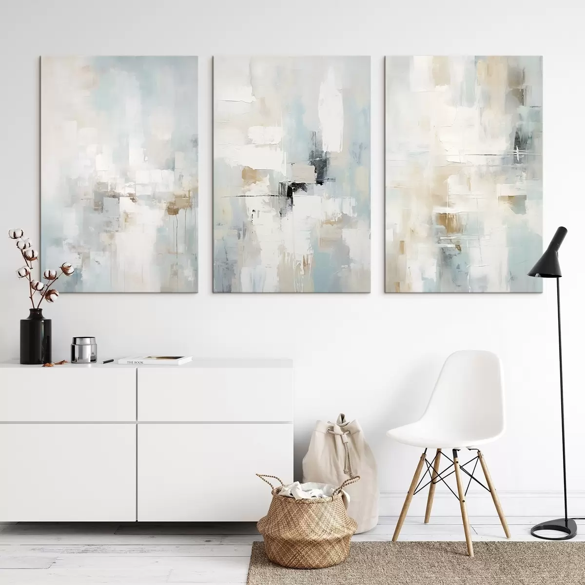 Quadri Palette astratta e ariosa: bianco, beige e azzurro pallido Nr m00966