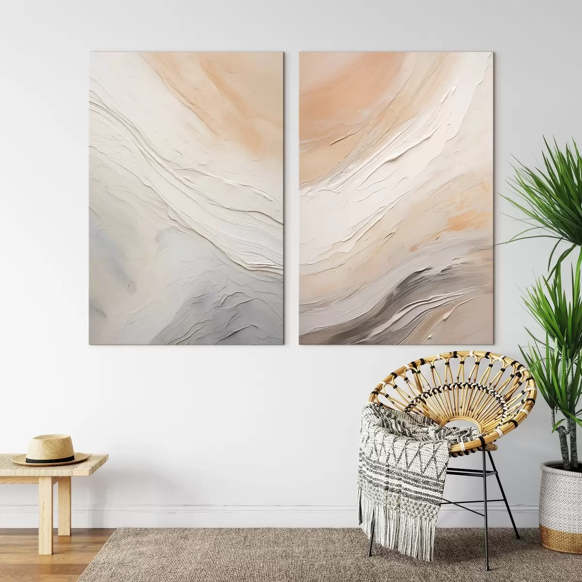Quadri Texture neutre in gesso con strati in rilievo fluidi Nr m00971