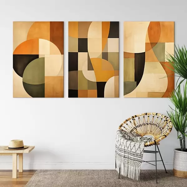 Quadri Blocchi geometrici morbidi nei colori beige, terracotta e salvia Nr m00975