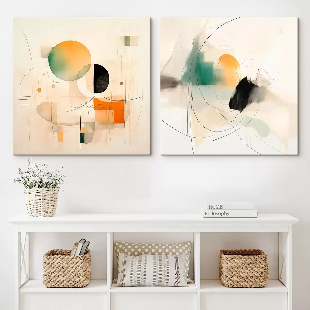 Quadri Dittico astratto con forme circolari e linee dinamiche Nr m00981