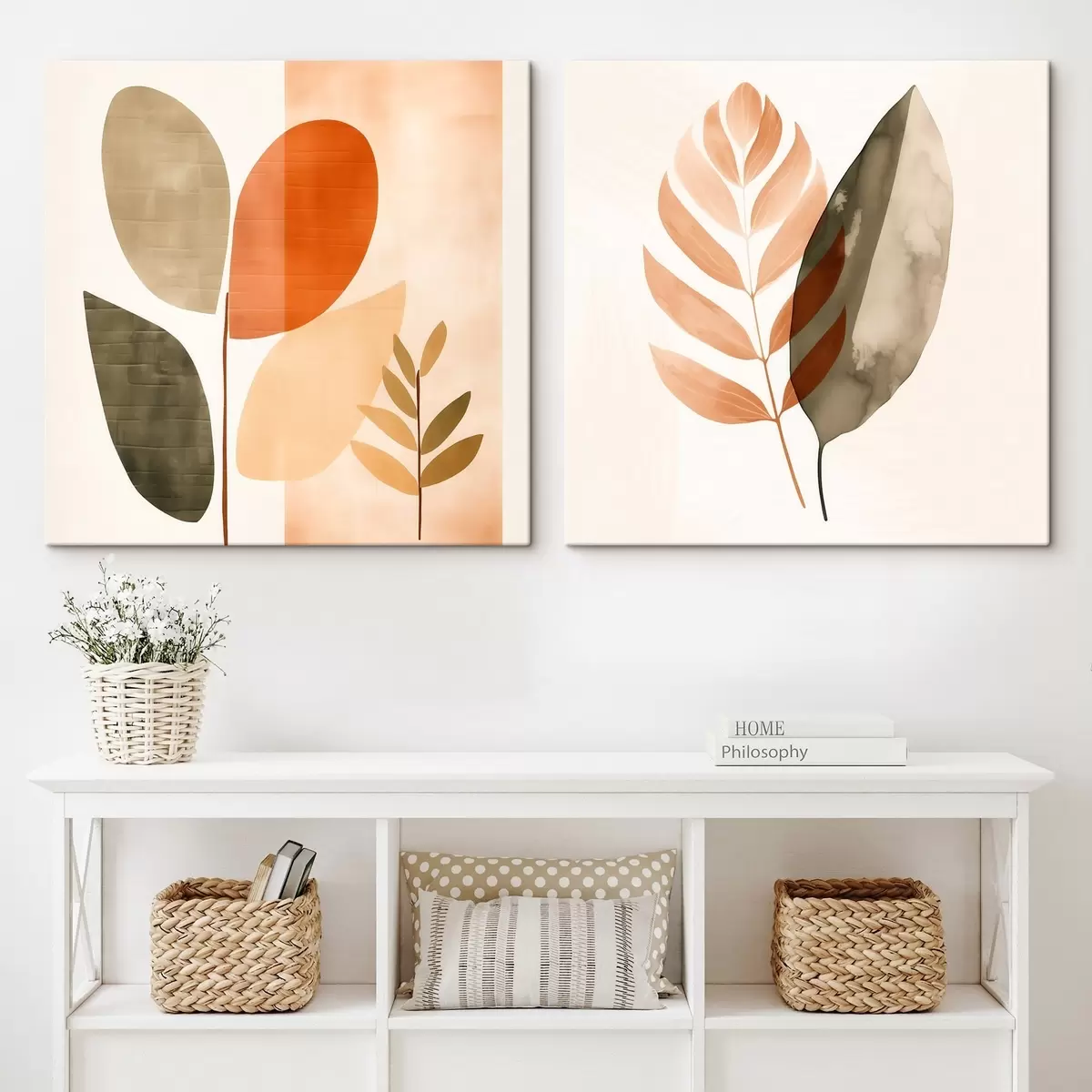 Quadri Dittico con motivi botanici in una palette di colori pastello Nr m00983