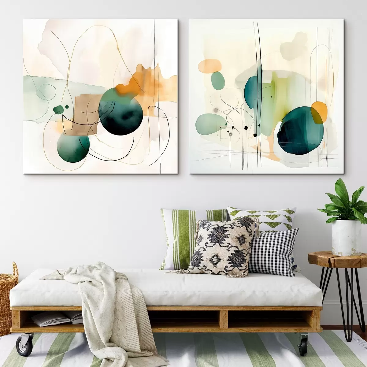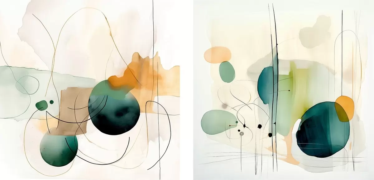 Quadri Composizione astratta in due parti con morbide macchie di colore Nr m00985