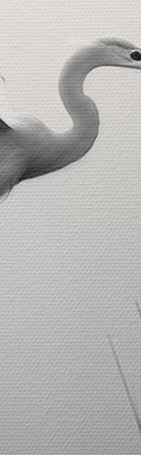 carta da parati Un airone bianco con le ali spiegate, che vola vicino ad alte canne, composizione minimalista in bianco e nero nr. m01007