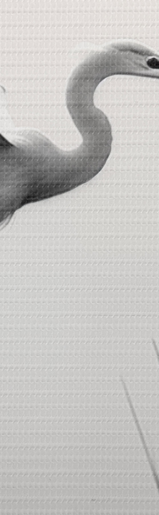 Quadri Un airone bianco con le ali spiegate, che vola vicino ad alte canne, composizione minimalista in bianco e nero Nr m01007