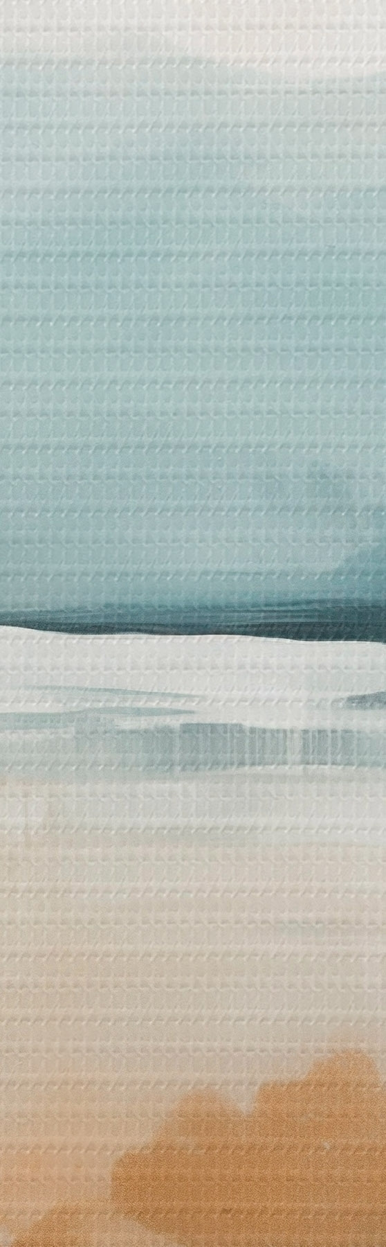 carta da parati Paesaggio astratto con montagne e lago in verde acqua e giallo materico, pennellate morbide, opera d'arte minimalista nr. m01012
