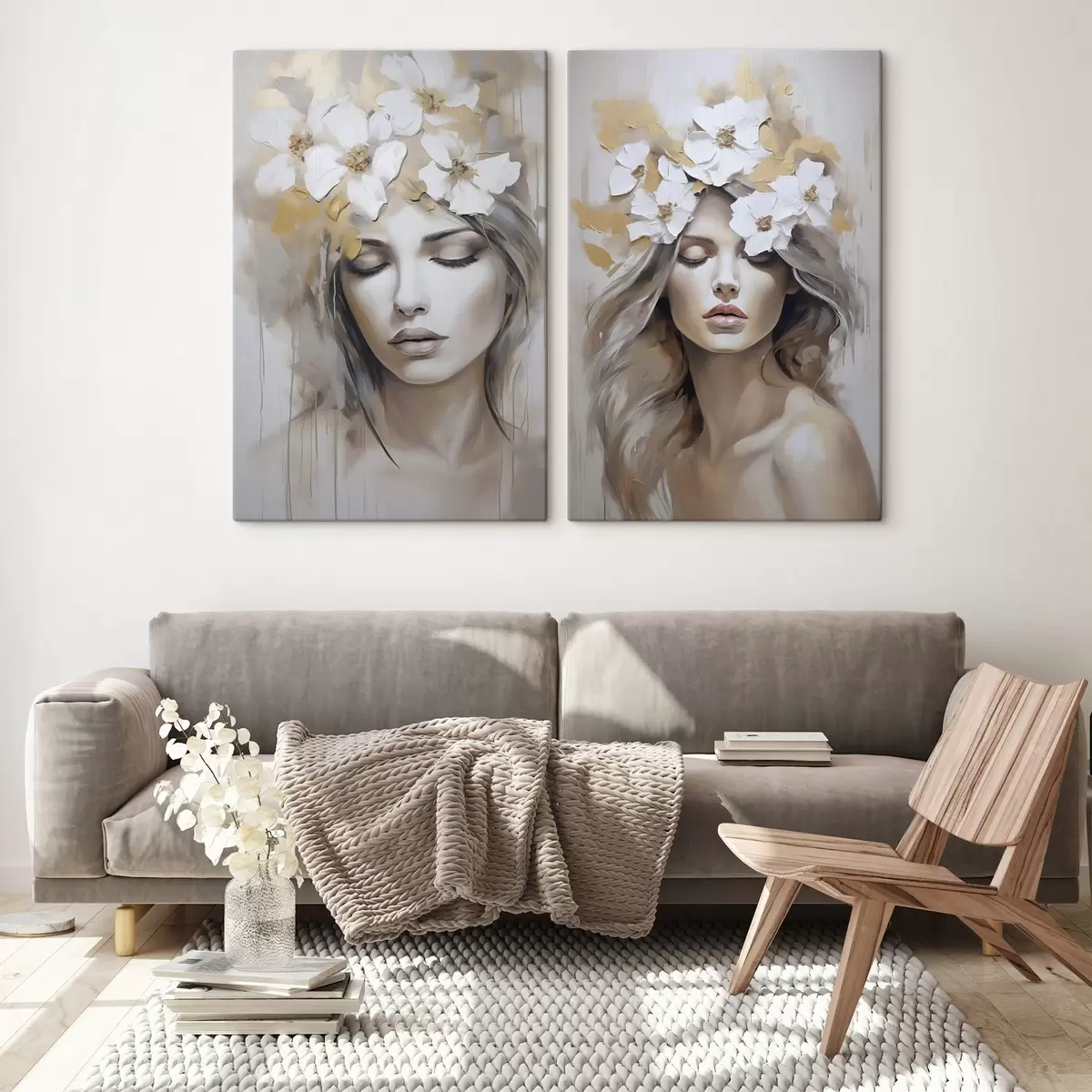 Quadri Ritratto astratto di una ragazza con fiori, imitazione di un dipinto Nr m01034