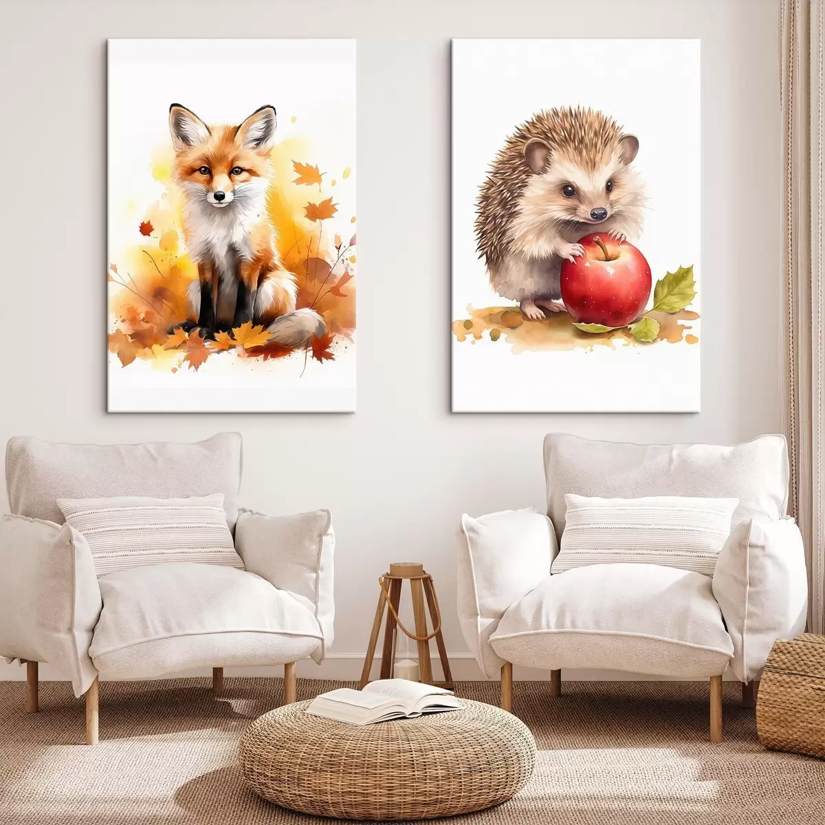 Quadri Volpe e riccio, acquerello imitazione Nr m01050