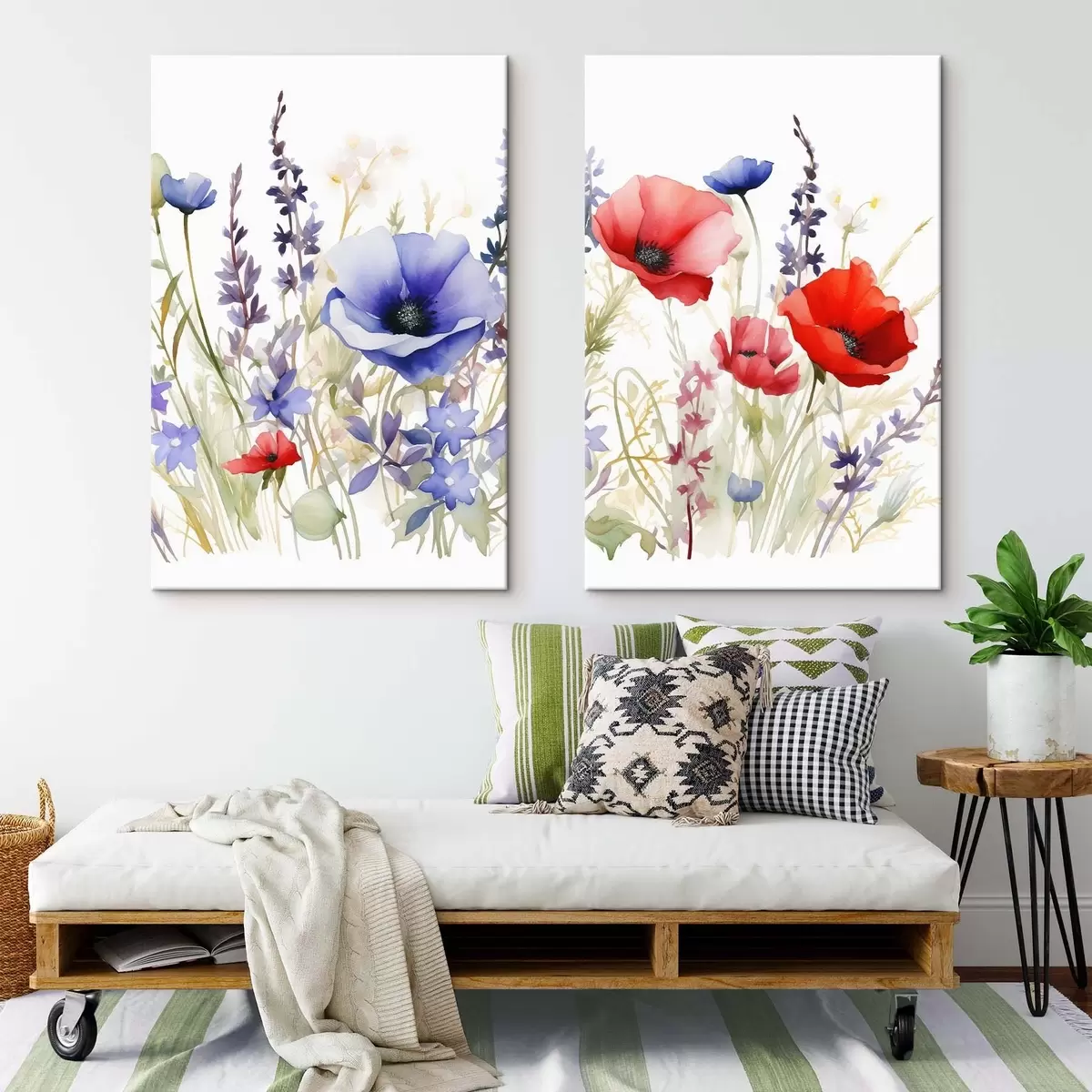 Quadri Papaveri in un campo, effetto acquerello Nr m01067
