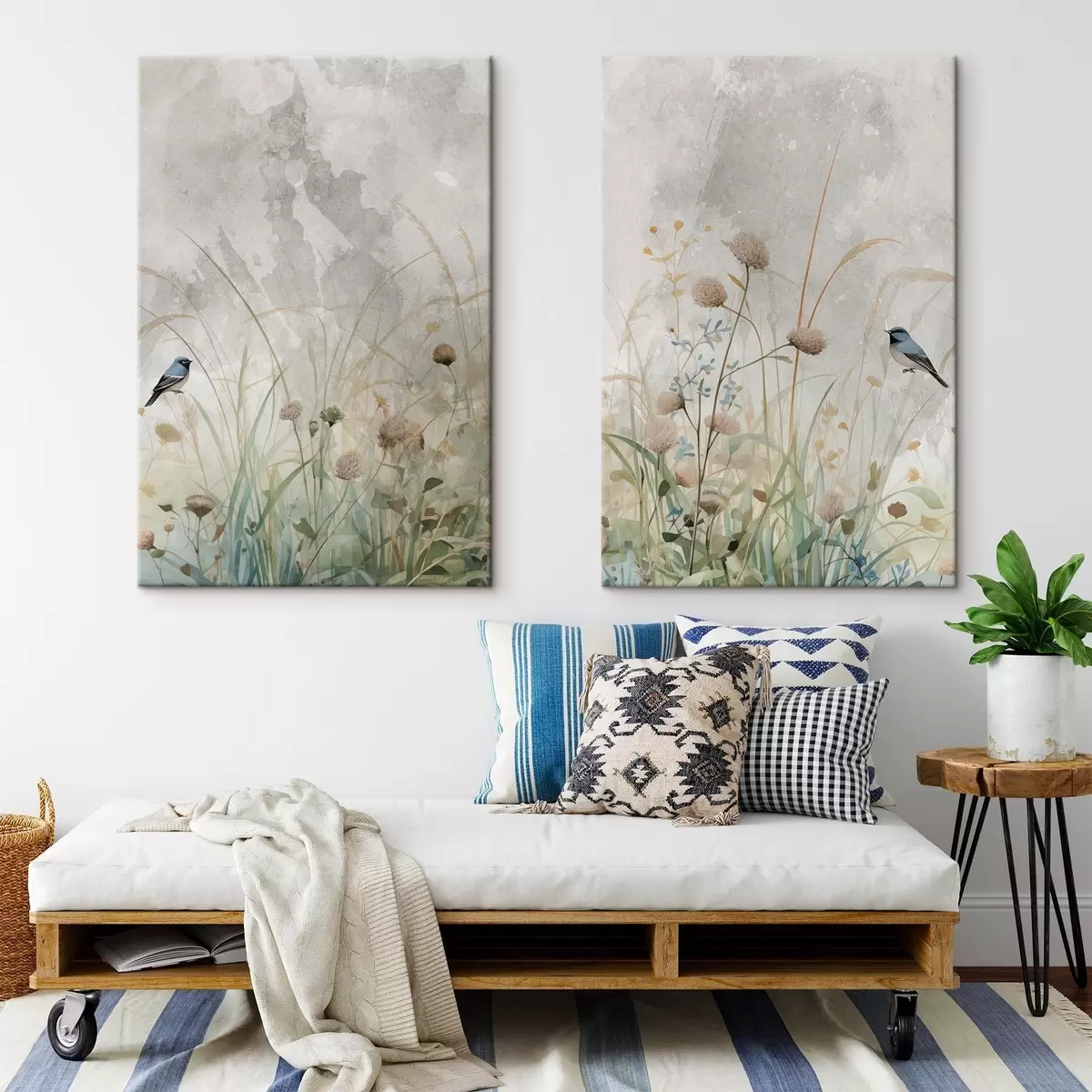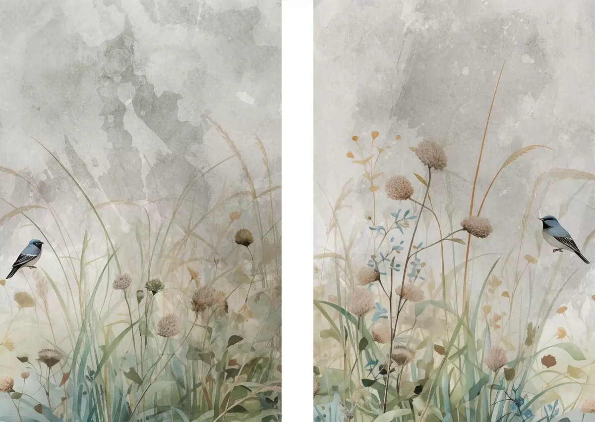 Quadri Uccelli su uno sfondo di fiori selvatici Nr m01068