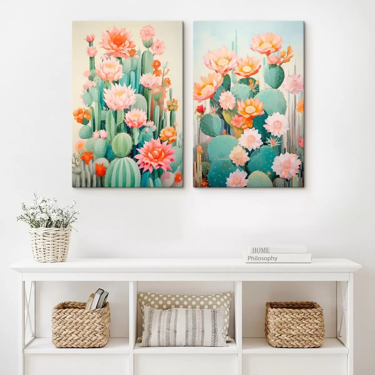 Quadri Cactus con grandi fiori, colori pastello e un senso di calma Nr m01086