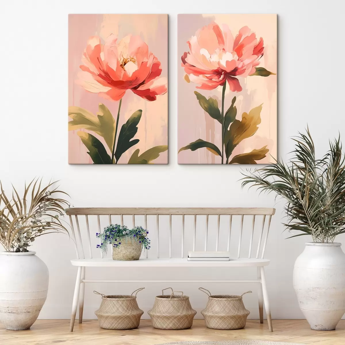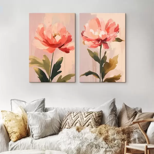 Quadri Peonie pastello su steli alti in calde tonalità rosa Nr m01093