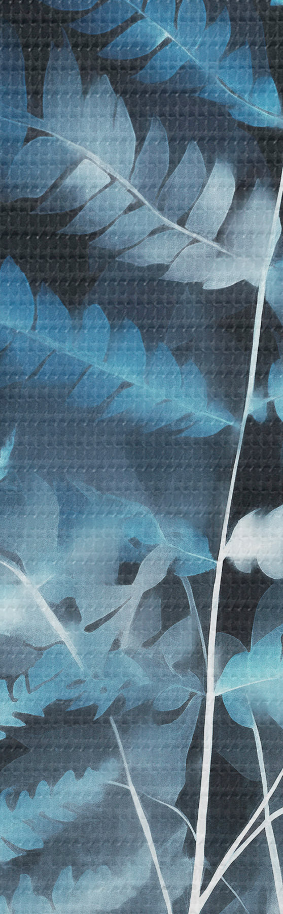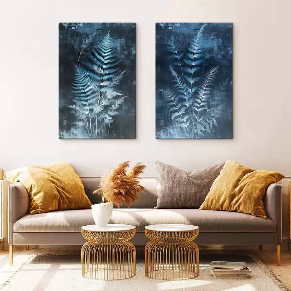Quadri Felci blu e piante su uno sfondo scuro e strutturato, con particolare attenzione ai dettagli intricati, effetto radiografico Nr m01121