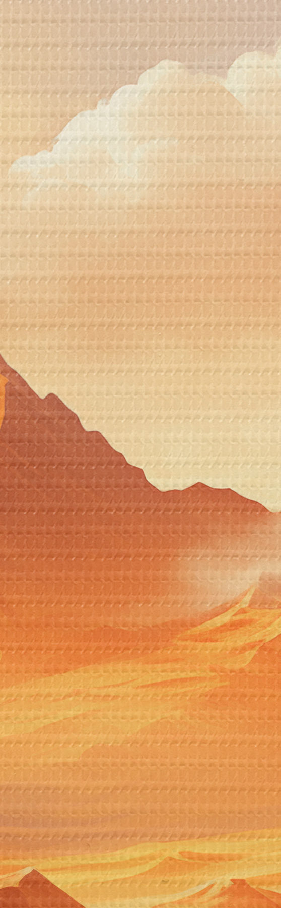 carta da parati Un vasto paesaggio desertico arancione con imponenti montagne rocciose sotto un cielo nebbioso e soleggiato con nuvole sottili. nr. m01122