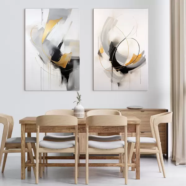 Quadri Pittura astratta con pennellate gialle, nere e bianche, linee dinamiche Nr m01125