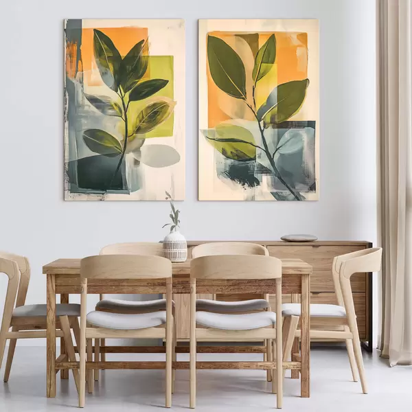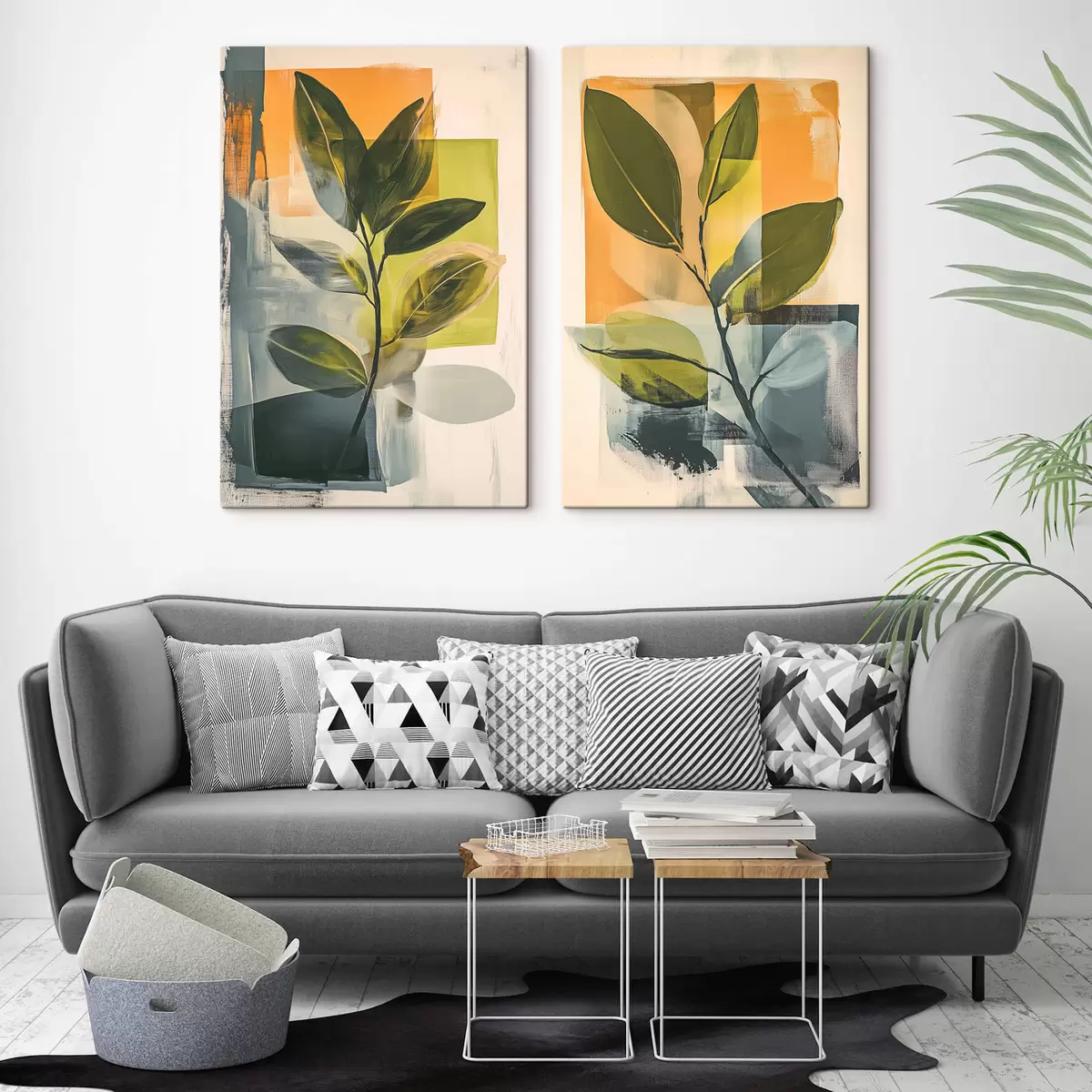 Quadri Rami con foglie su sfondo astratto Nr m01132