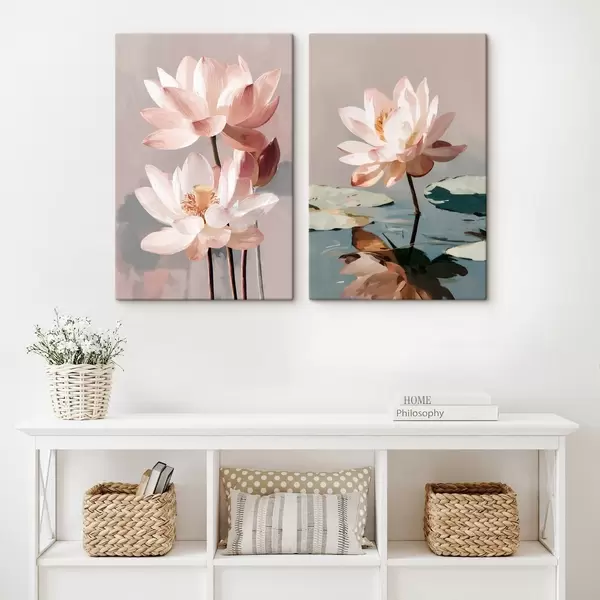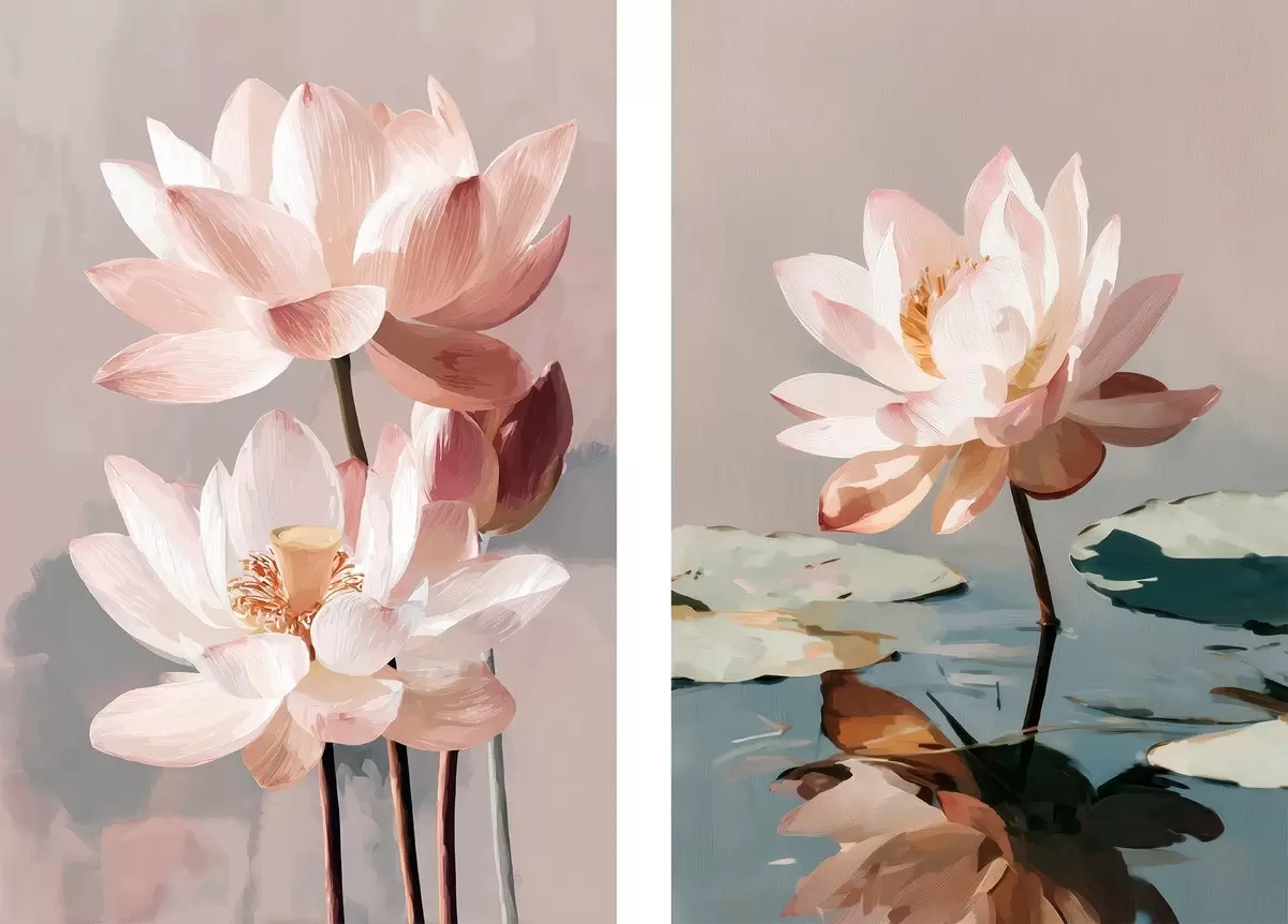 Quadri Delicati fiori di loto rosa in stile pittorico digitale moderno Nr m01152