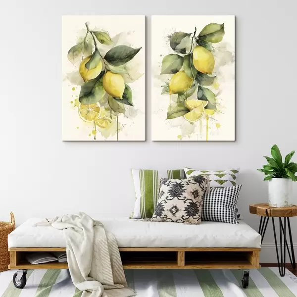 Quadri ramo in stile acquerello con limoni Nr m01172