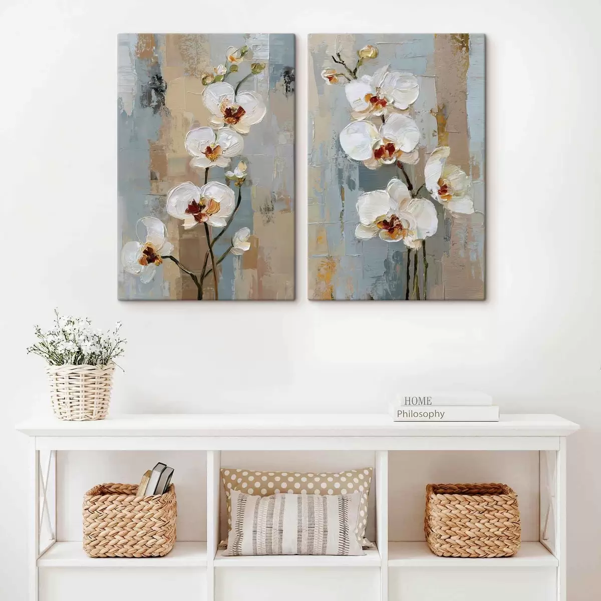Quadri fiori di orchidea bianca in stile pittura a olio Nr m01175