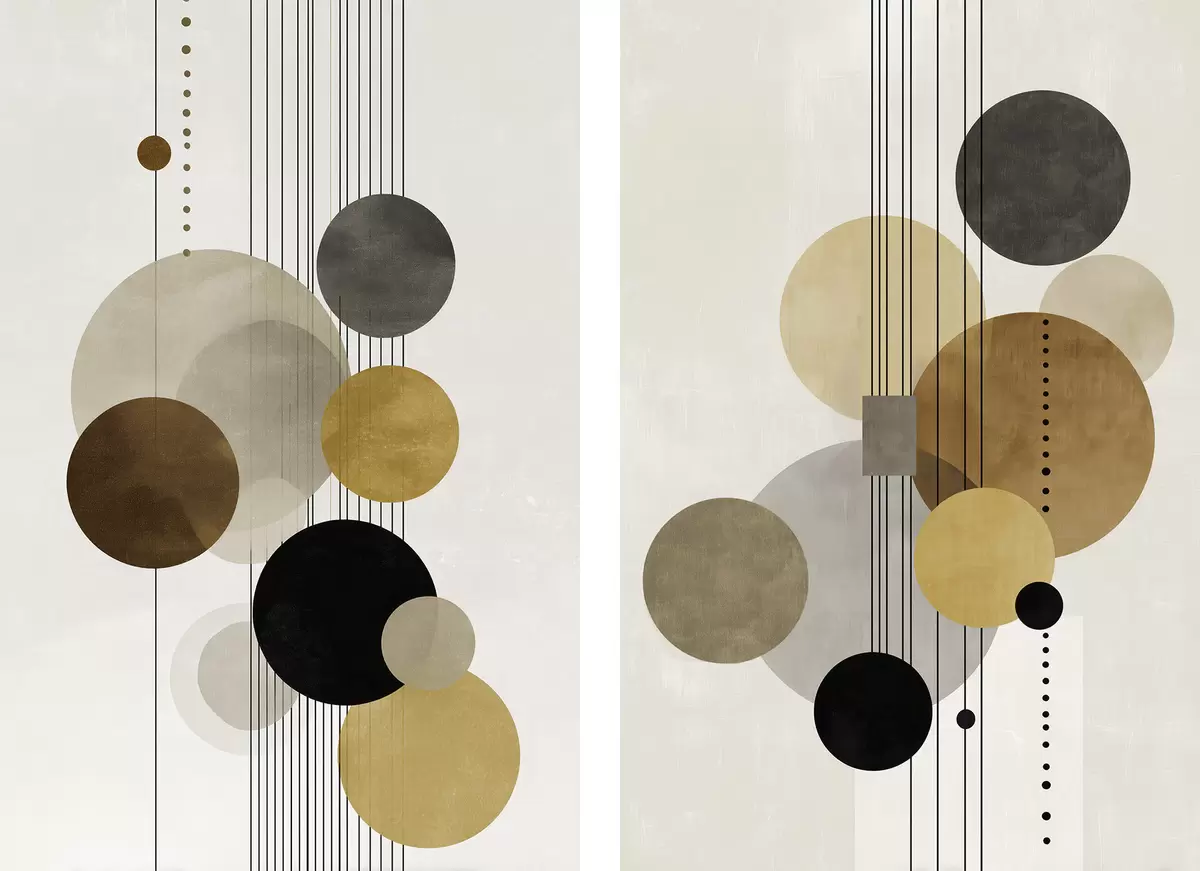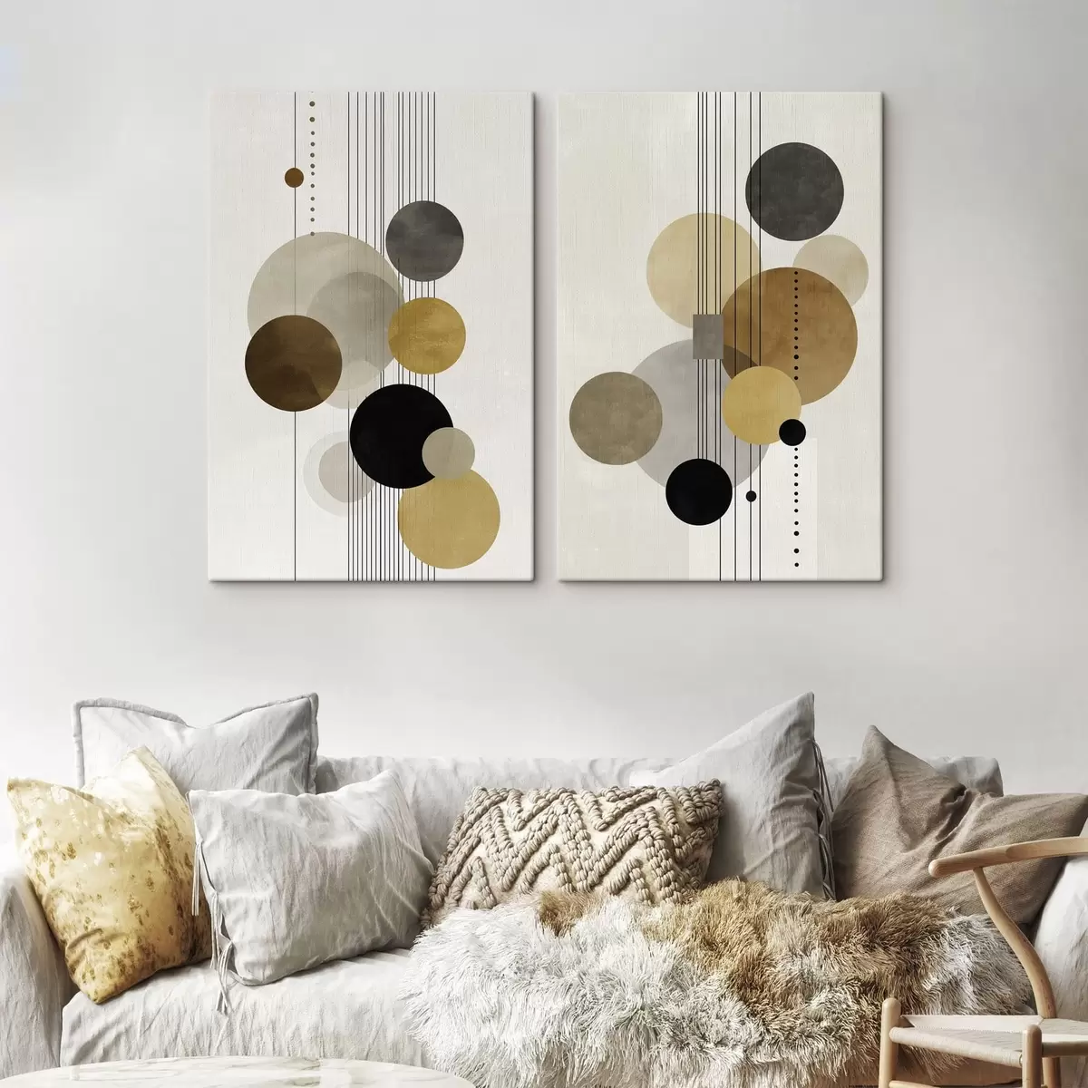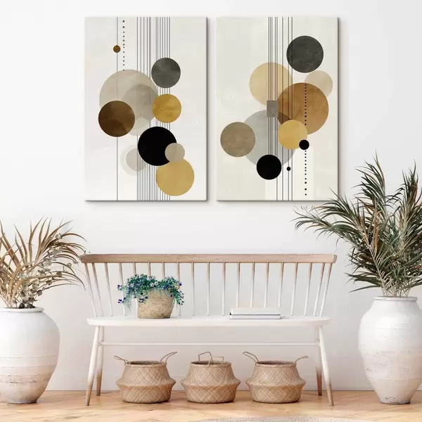 Quadri astrazione con cerchi e linee in colori caldi Nr m01182