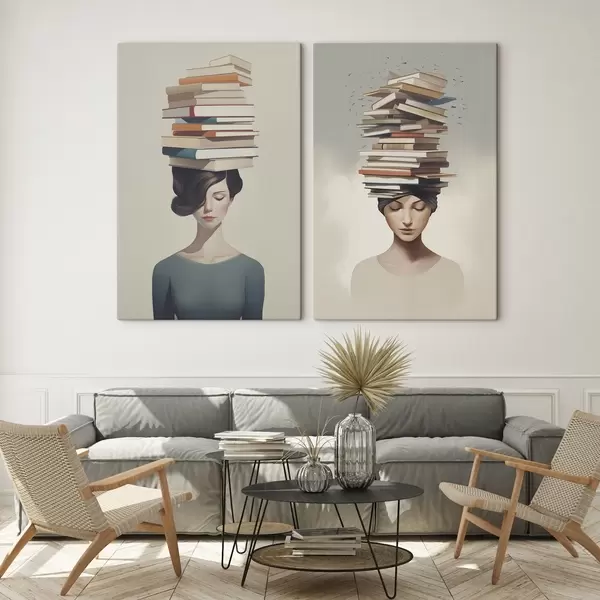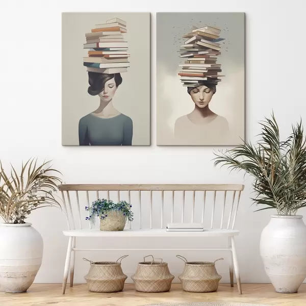 Quadri Ritratto di una ragazza con libri Nr m01184
