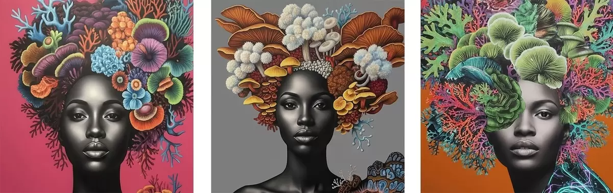 Quadri Ritratto psichedelico di una donna con funghi Nr m01308