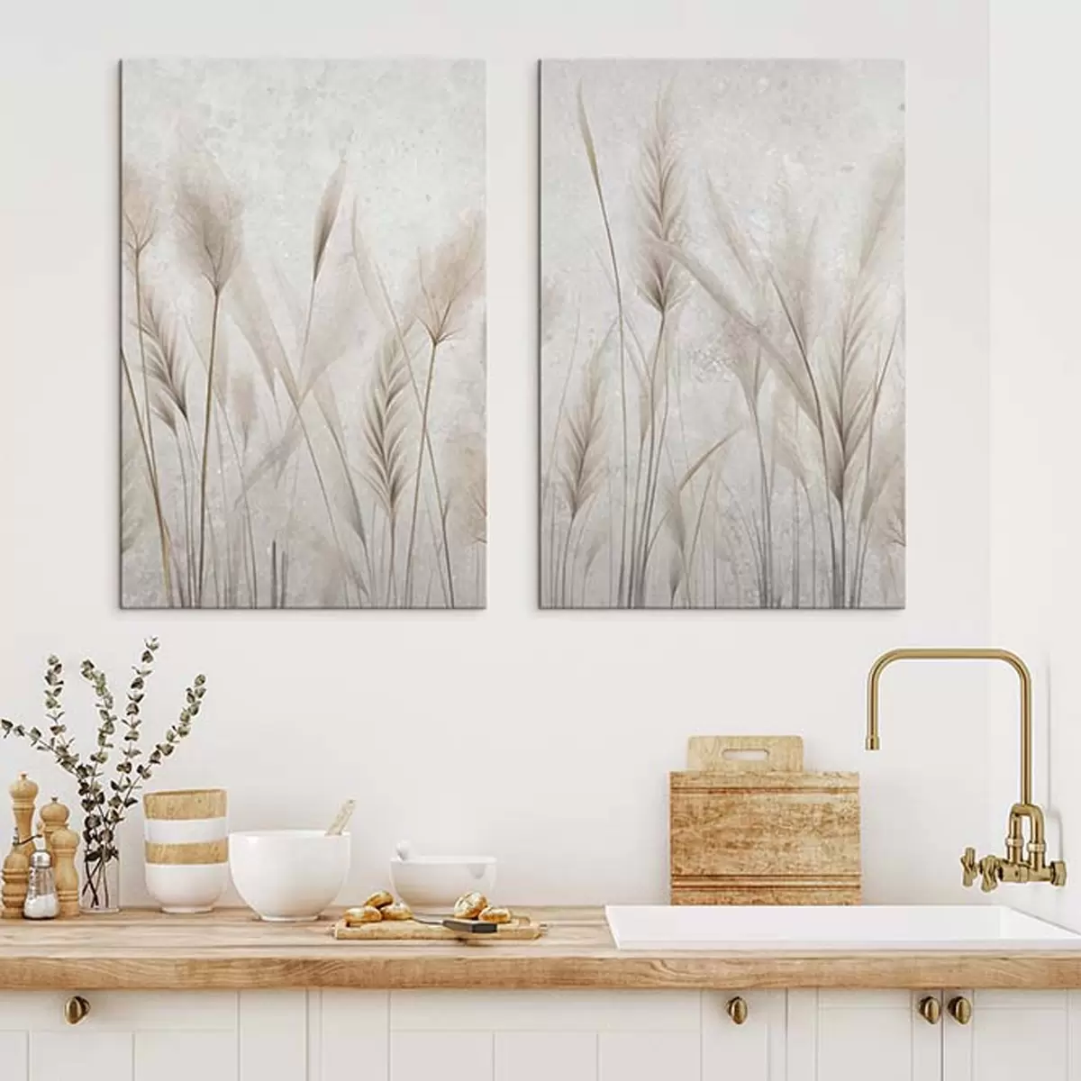 Quadri Spighette e pompas grass su uno sfondo invecchiato Nr m30024