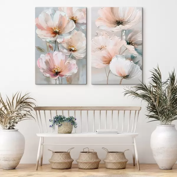 carta da parati Dittico floreale in una palette di colori beige-corallo in stile pittura a olio nr. m30029
