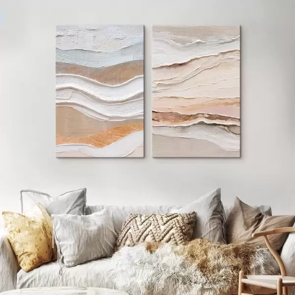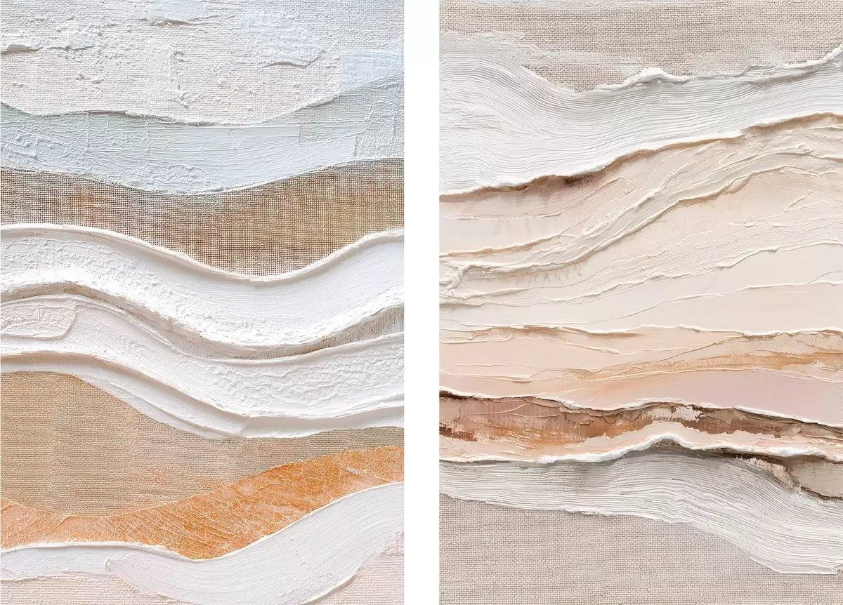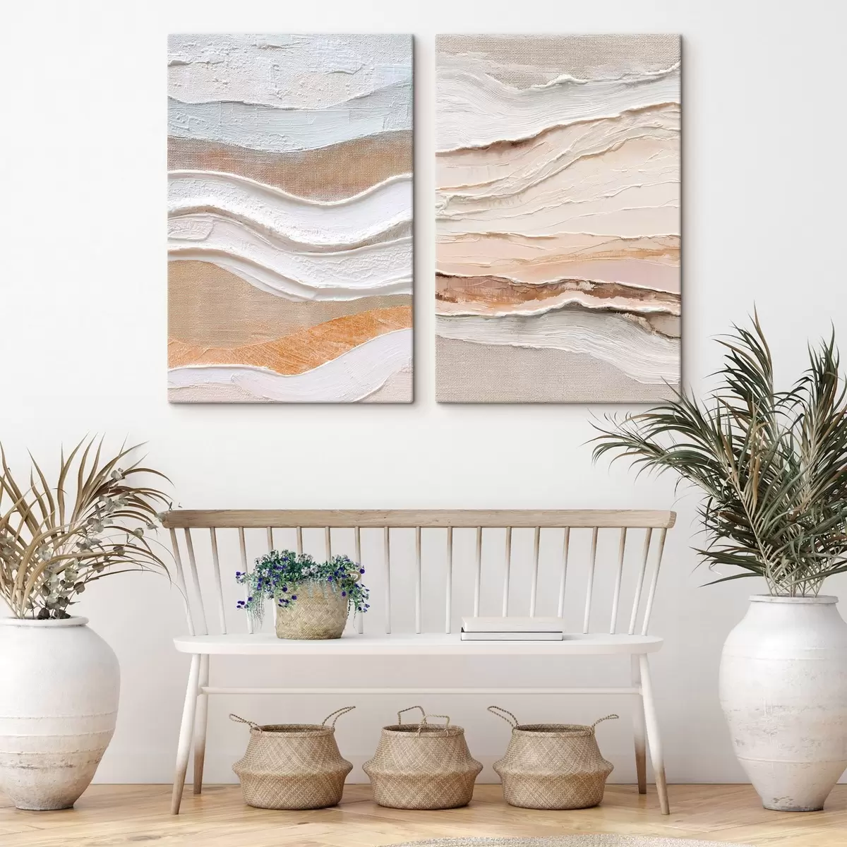 Quadri Dittico minimalista con onde materiche su sfondo di lino Nr m30031