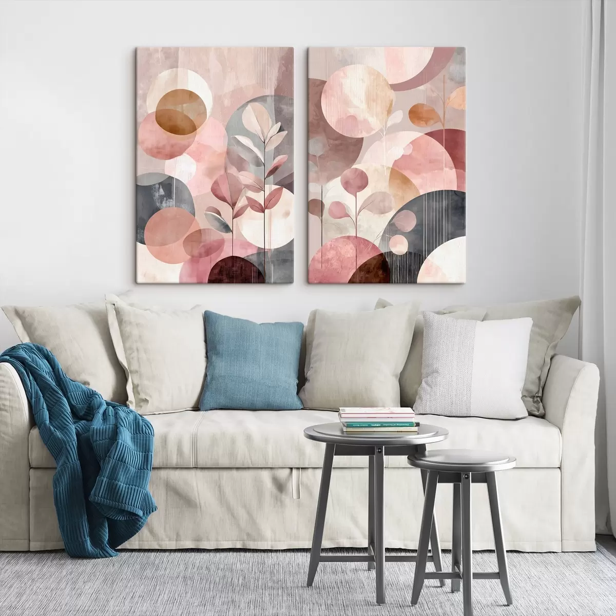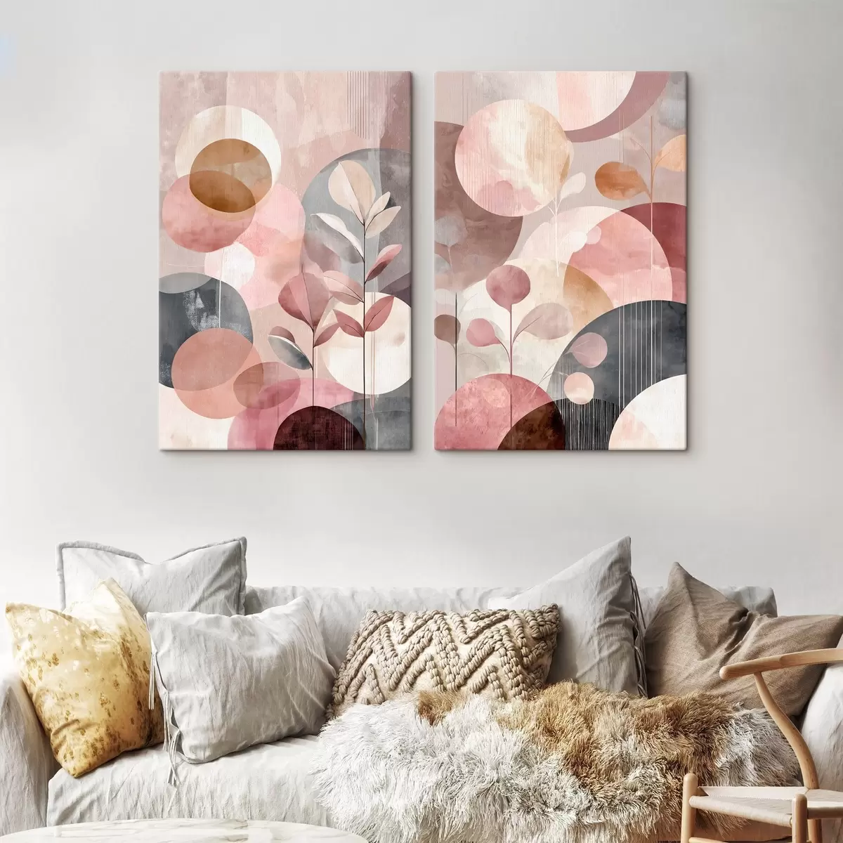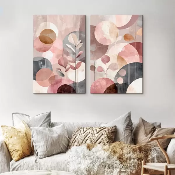 Quadri Arte floreale dai toni pastello con elementi geometrici Nr m30036