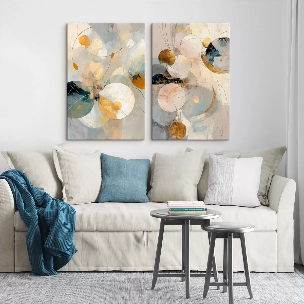 Quadri Arte decorativa nei toni del blu-crema con un delicato effetto luminoso Nr m30039