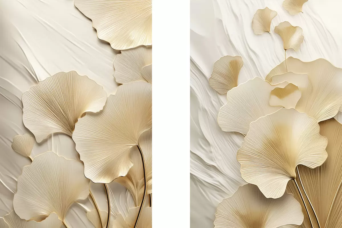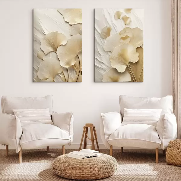 Quadri Foglie astratte di ginkgo su uno sfondo leggero e strutturato, composizione elegante e astratta Nr m30054