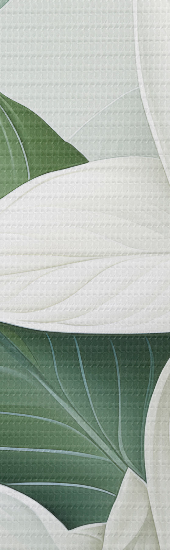carta da parati Fiori bianchi con foglie verdi, sfondo pastello nr. m30055