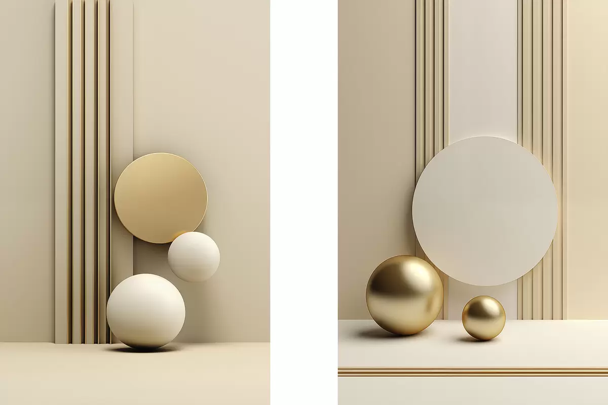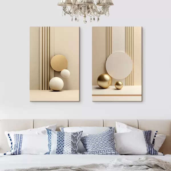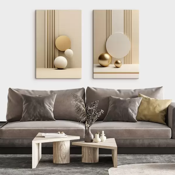 Quadri Astratto beige arte moderna con linee verticali e sfere Nr m30056