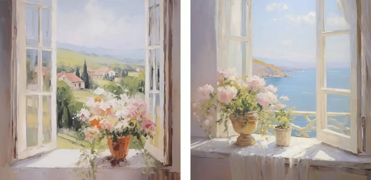 Quadri Un bouquet in un vaso vicino alla finestra Nr m30074