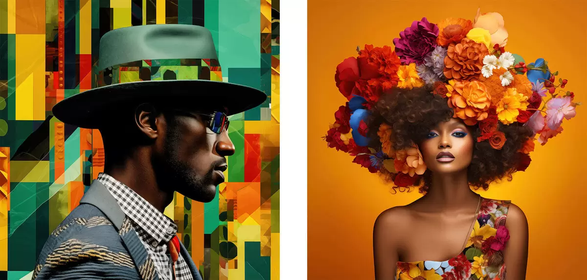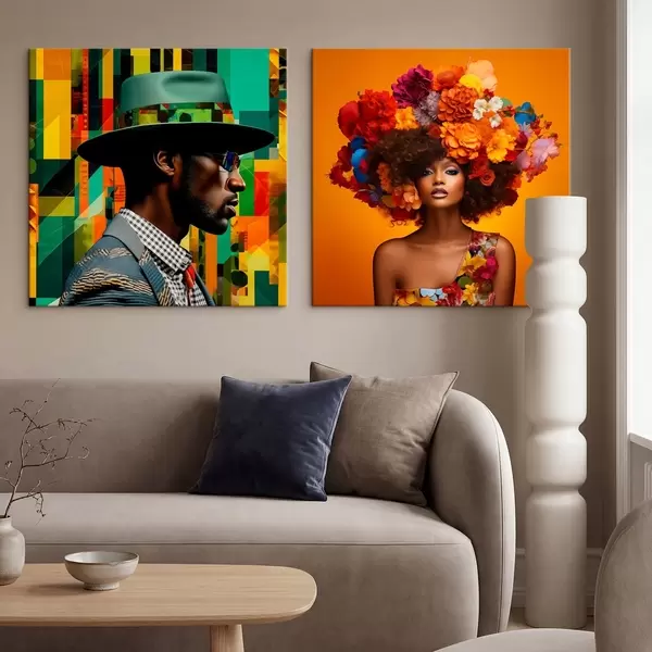 Quadri Ritratto di un uomo con un cappello e una donna con una grande corona di fiori Nr m30102