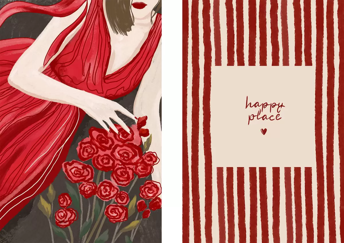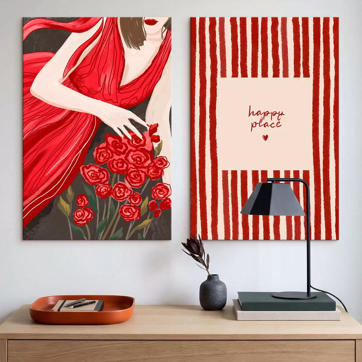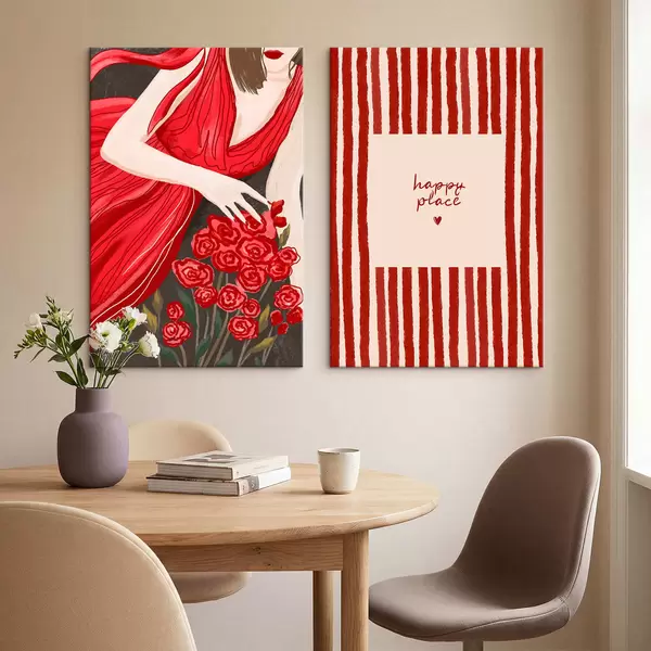 Quadri Donna con rose e motivo rosso Nr m30107