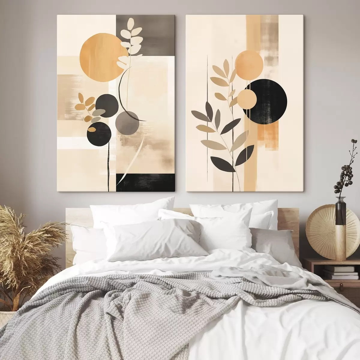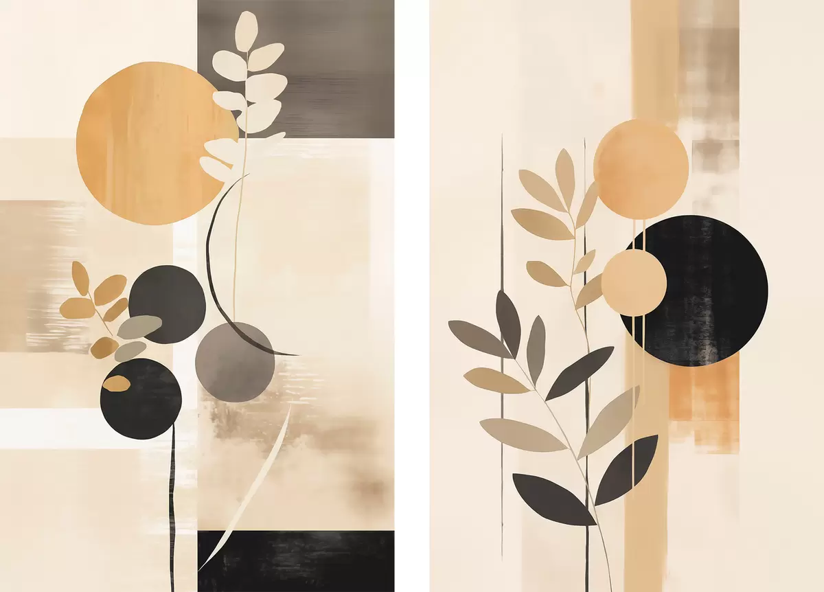 Quadri Astrazioni con foglie e cerchi Nr m30133
