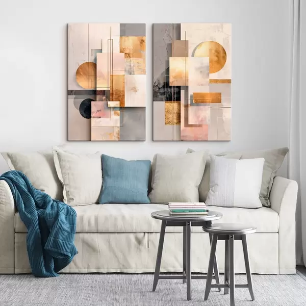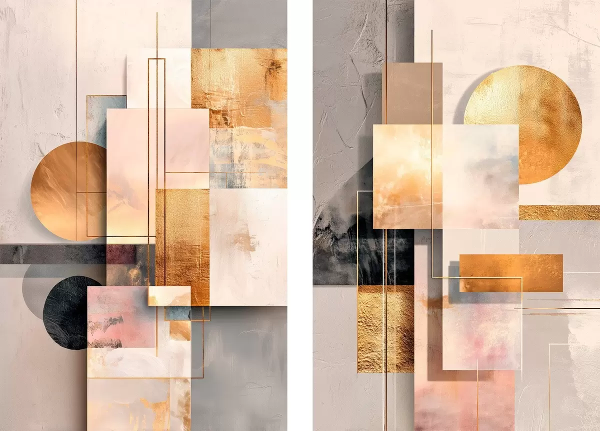 Quadri Astrazione geometrica con accenti color rame e beige in stile grafico moderno Nr m30138