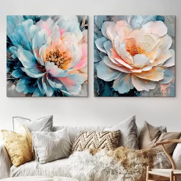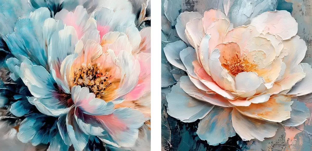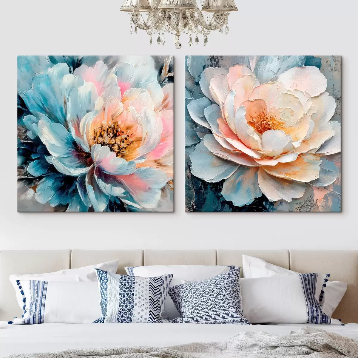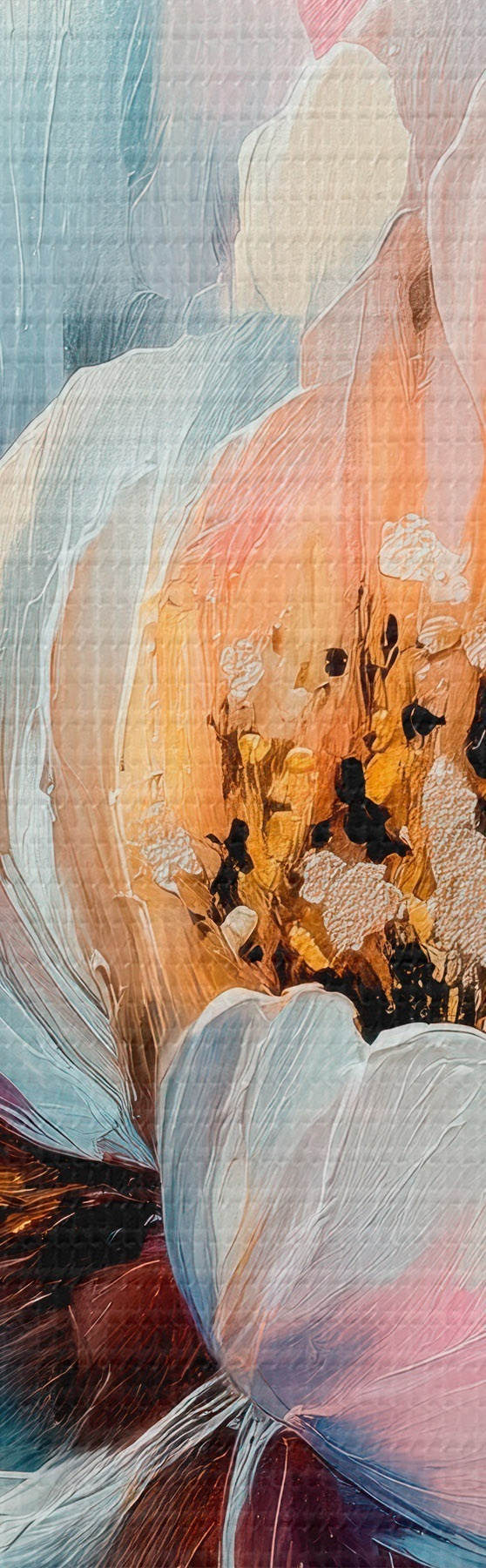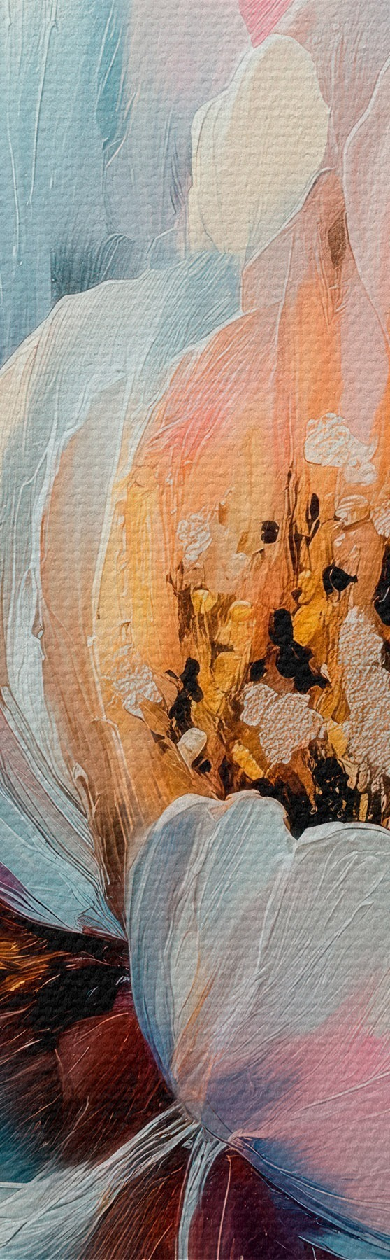 Quadri Composizione floreale astratta in una palette di colori rosa e blu con petali dalla texture particolare Nr m30148