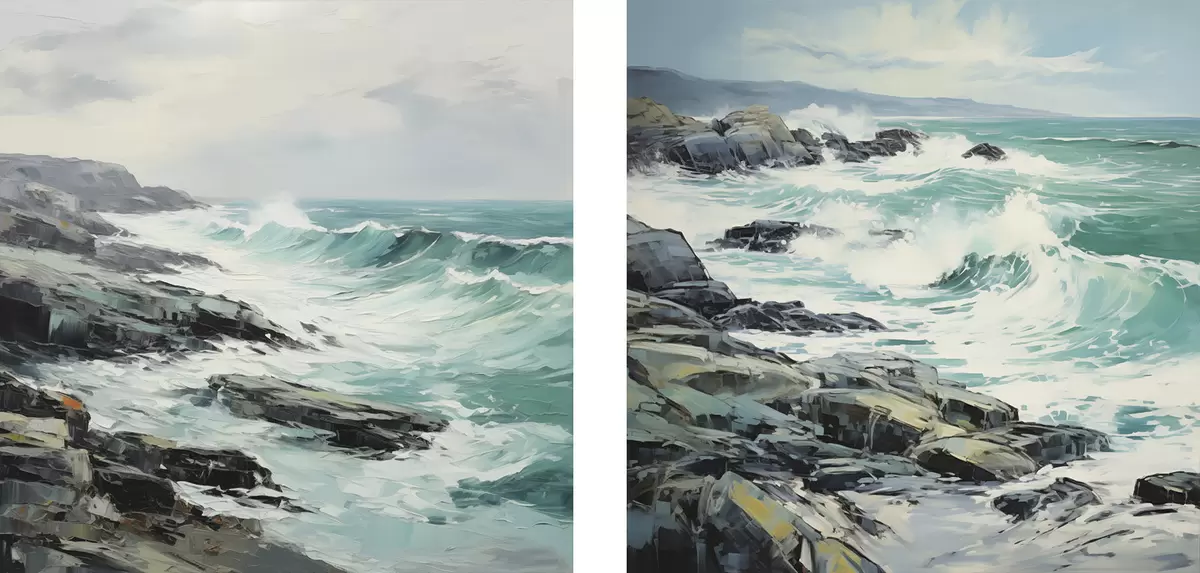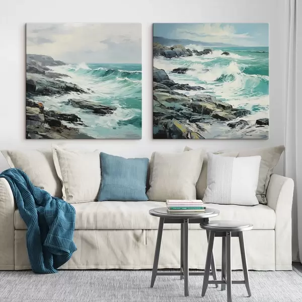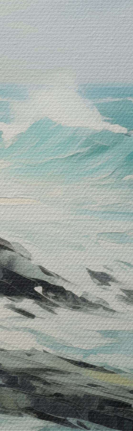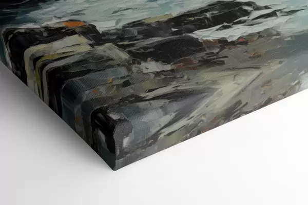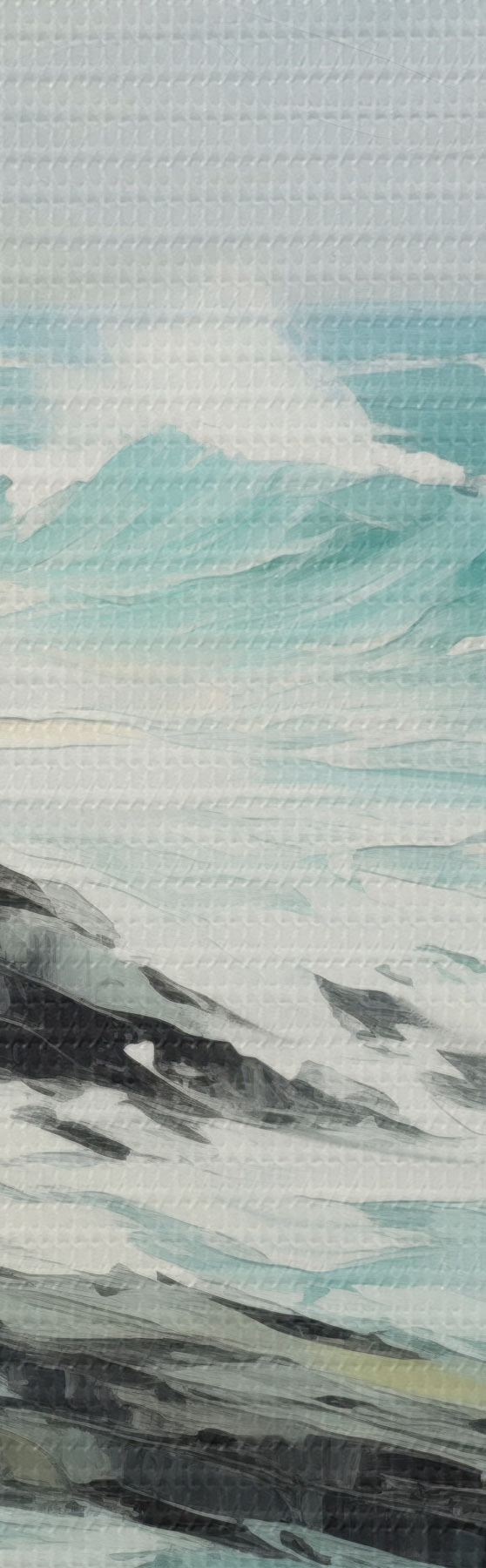 Quadri Un paesaggio costiero roccioso con onde sotto un cielo nuvoloso, in stile pittorico Nr m30198