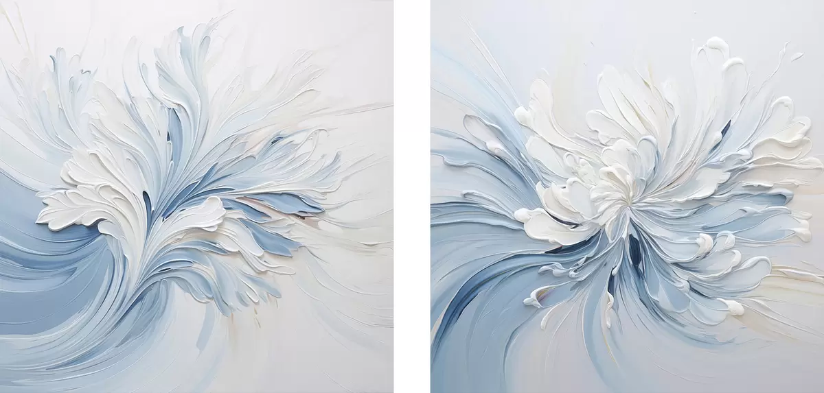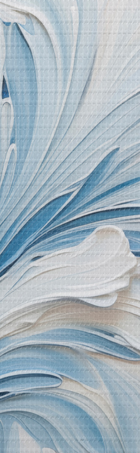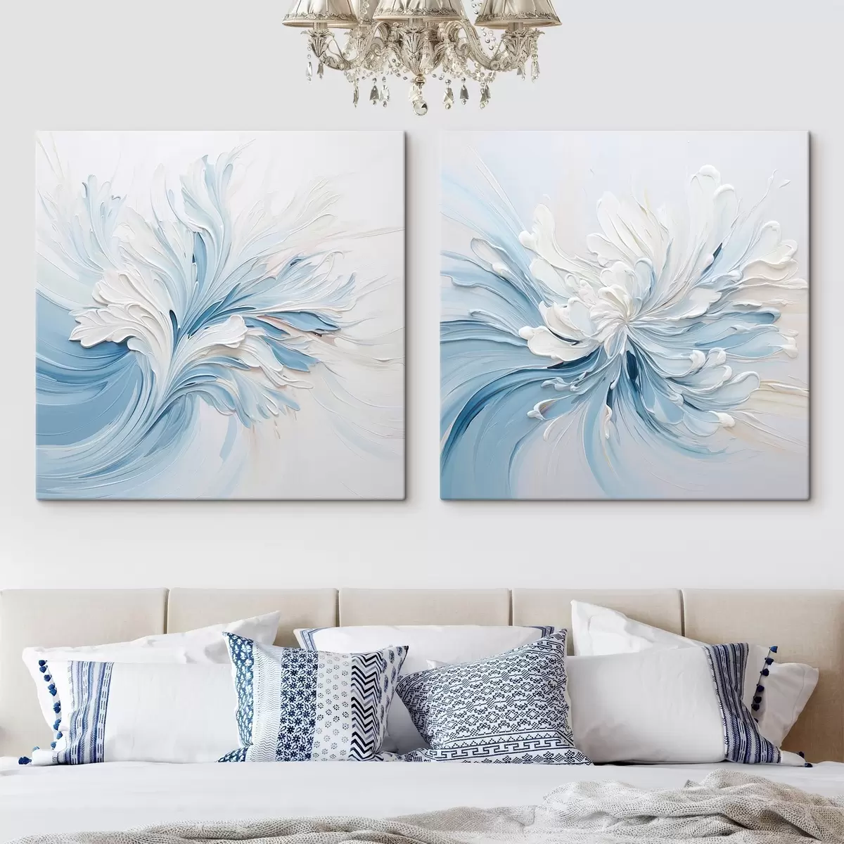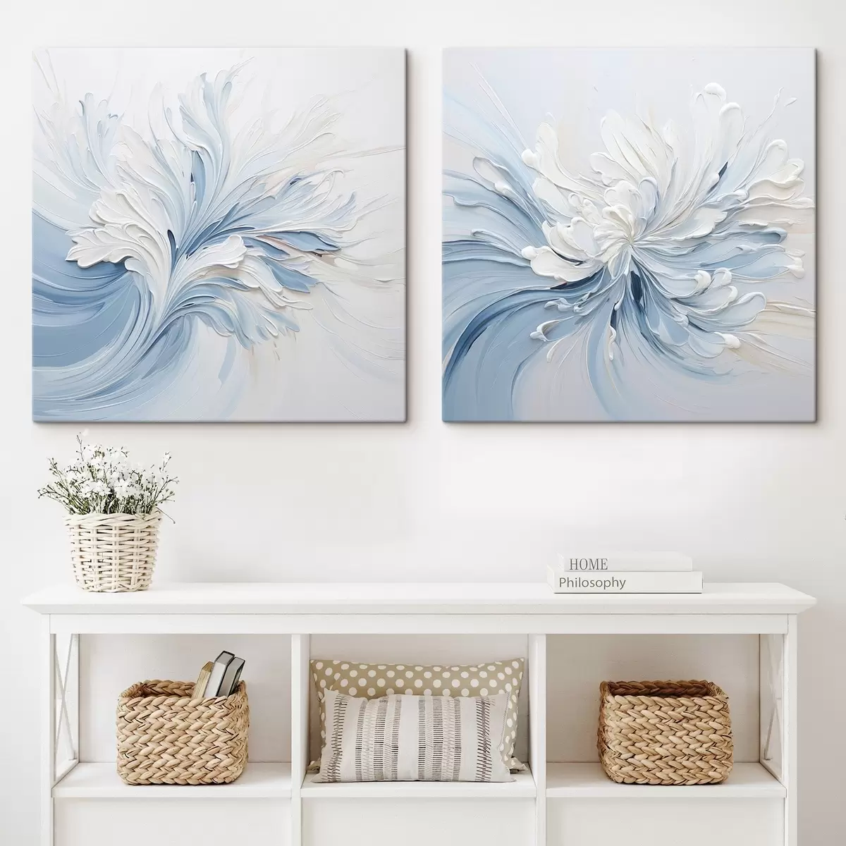 Quadri Un motivo floreale astratto nei toni del bianco e dell'azzurro, con petali in rilievo e linee sinuose Nr m30202