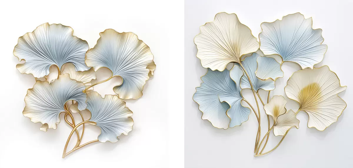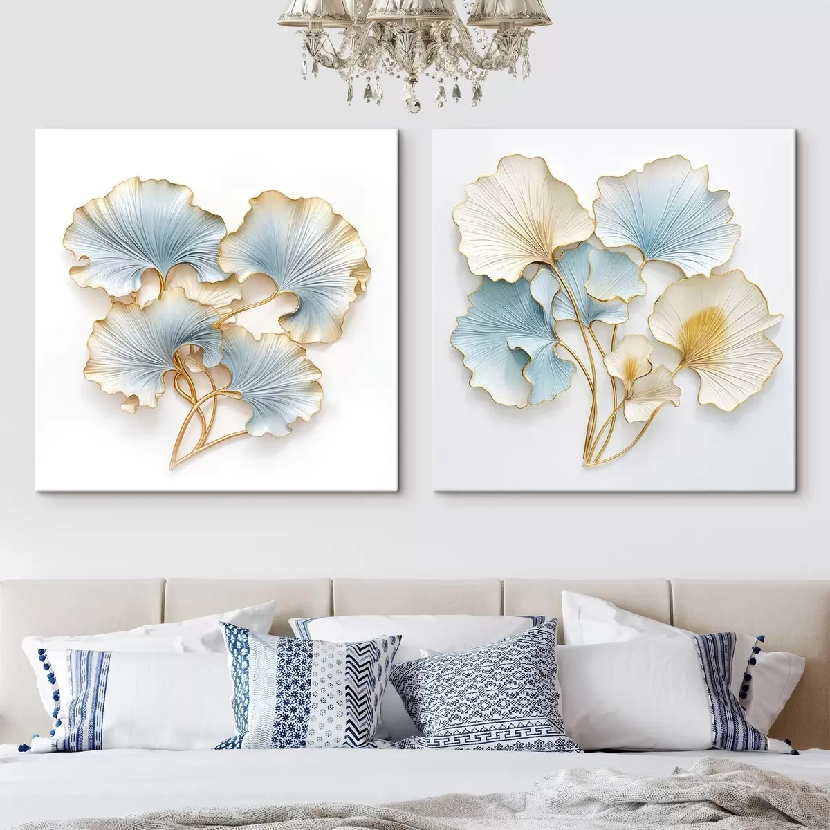 Quadri Foglie di ginkgo stilizzate con tocchi di blu e giallo Nr m30203