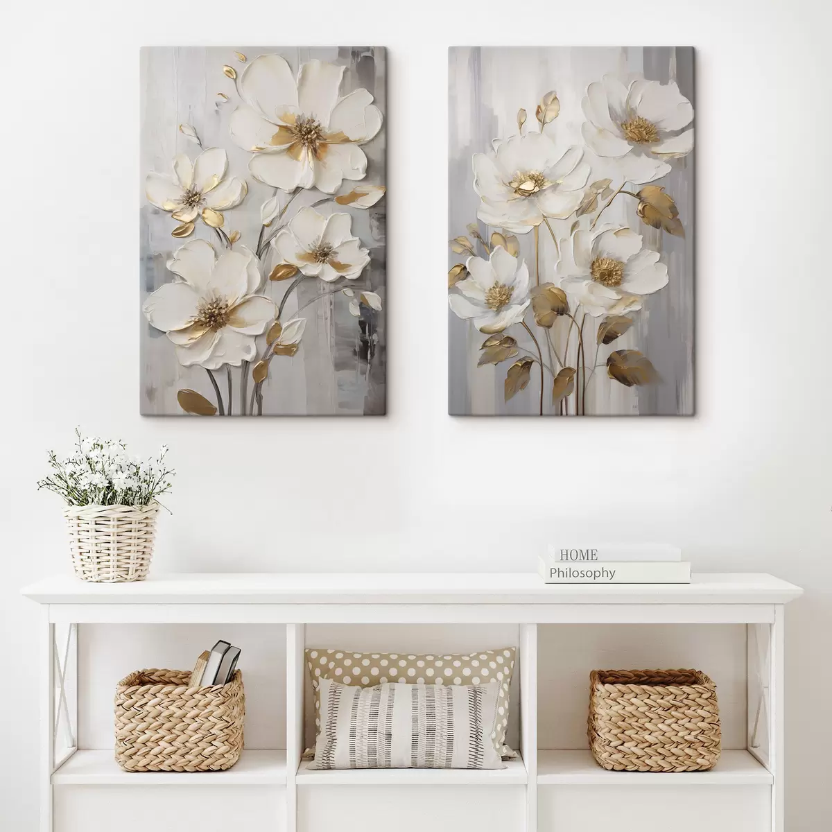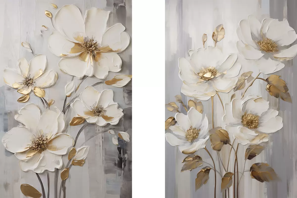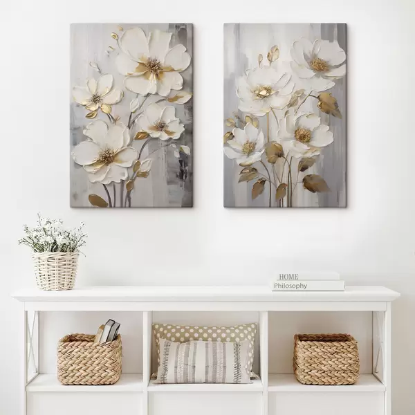 Quadri Fiori bianchi con tocchi di giallo su uno sfondo ruvido Nr m30311